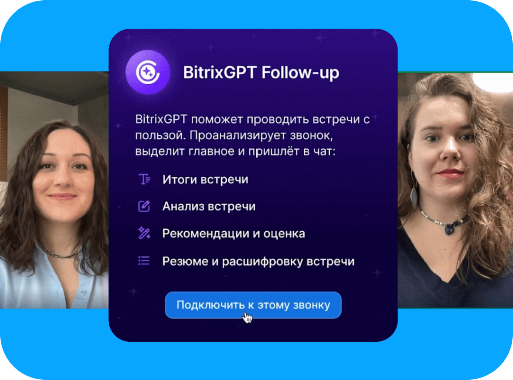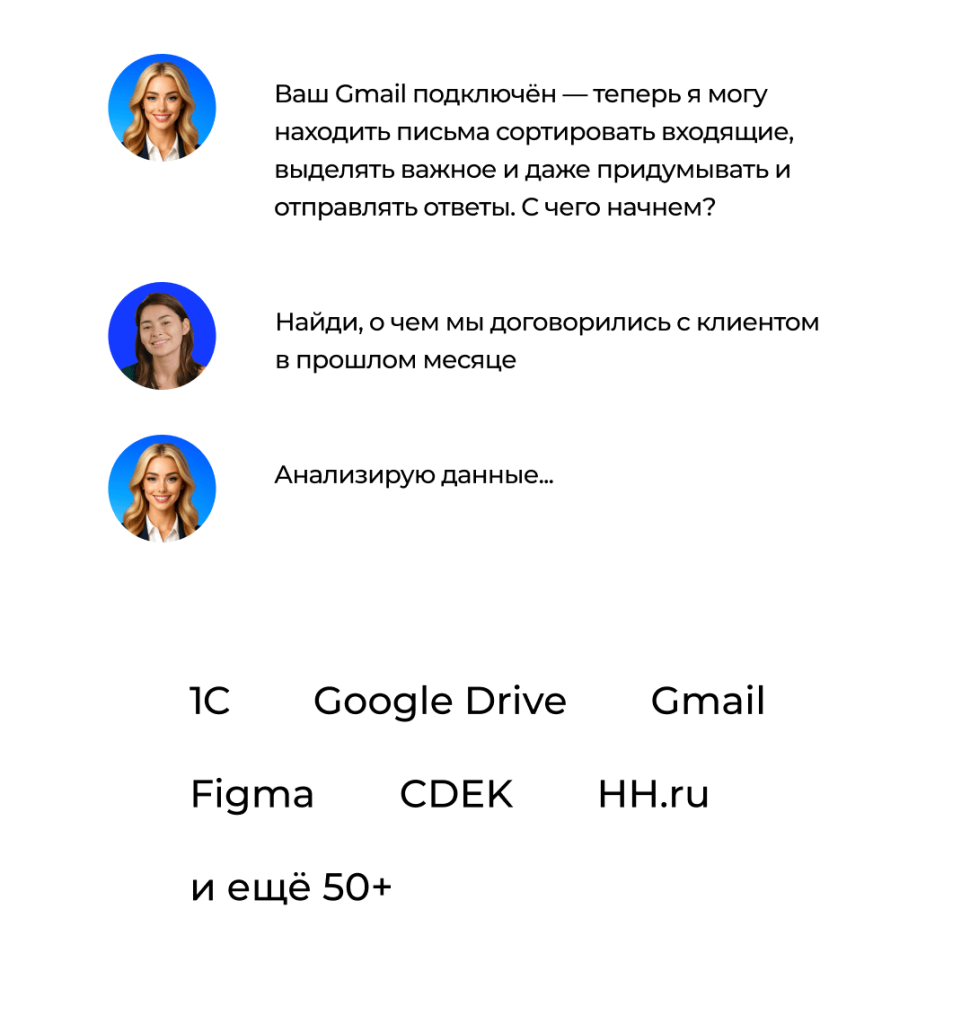 AI формирует follow-up после видеозвонков, подводит итоги обсуждений и помогает контролировать выполнение договоренностей. Интеграция с мессенджерами позволяет вести коммуникации напрямую из CRM, без потери данных и контекста.