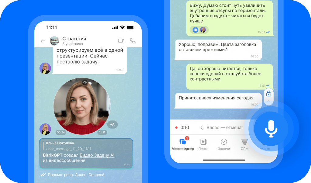 Теперь в Битрикс24 можно поставить задачу прямо из разговора. AI анализирует голосовые или текстовые сообщения, формирует задачу, назначает ответственного, определяет срок и создает чек-лист.
